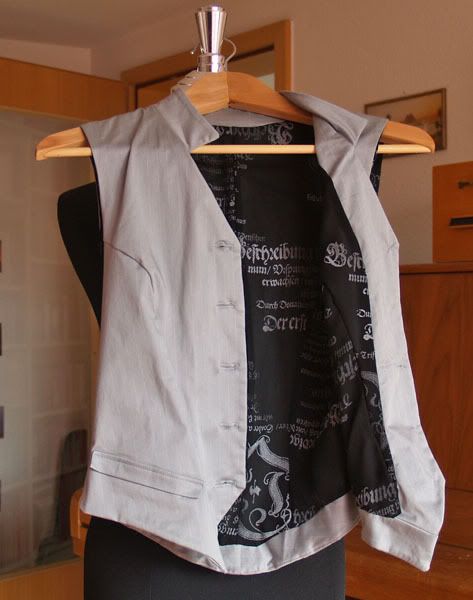 The cut is a military-cut jacket from Burda 9 / 2006, I changed only the length. Fabric is nylon backpack of funfabric.com where I have the reflector tape. The buttons are from the button paradise.